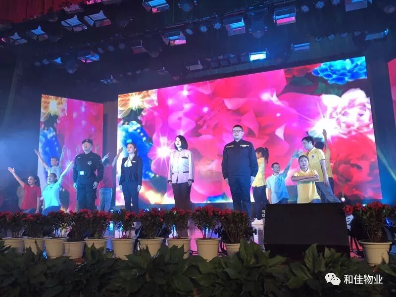 在这个属于物业人的舞台上,各物业公司通过自编、自导和自演的歌舞、小品等节目精心编排了文艺节目,观众席上掌声雷动,将气氛推向了高潮。和佳公司的姑娘小伙子们表演的诗朗诵《幸福是什么颜色》获得了满堂掌声。